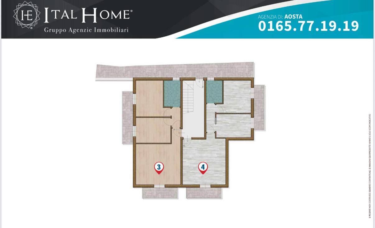 La posizione dell'immobile è strategica data la vicinanza con Aosta ed a poca distanza dai servizi principali con fermata autobus di fronte a casa ma allo stesso tempo in una zona tranquilla e residenziale.