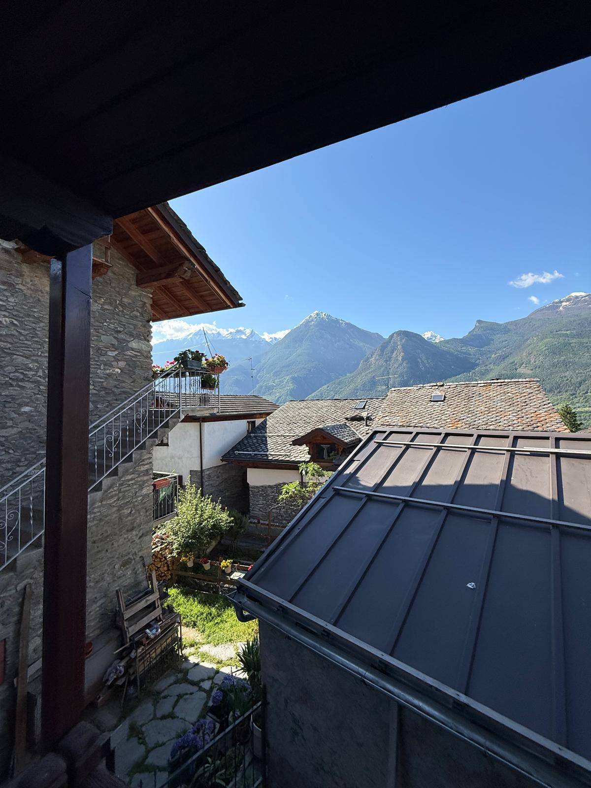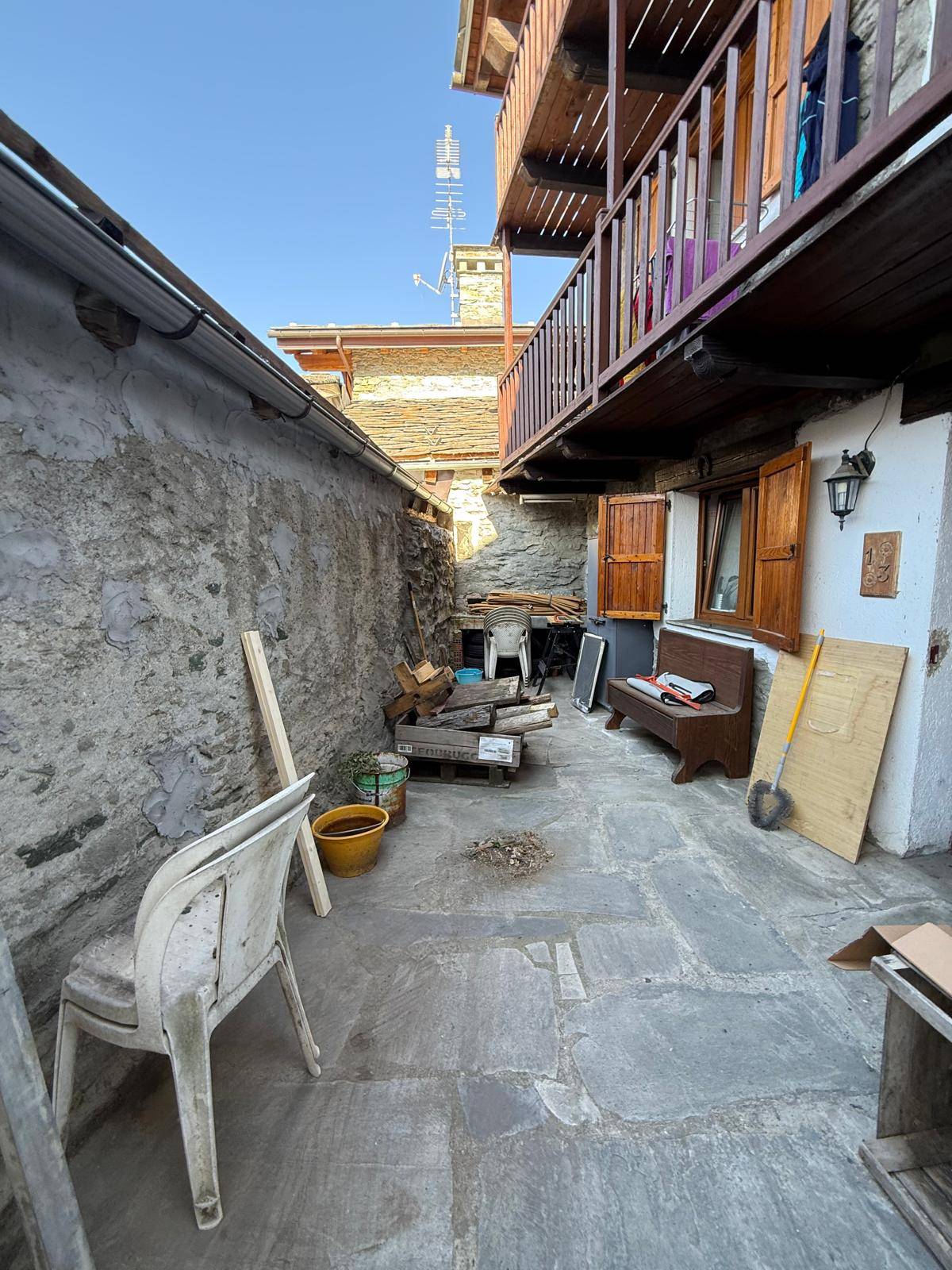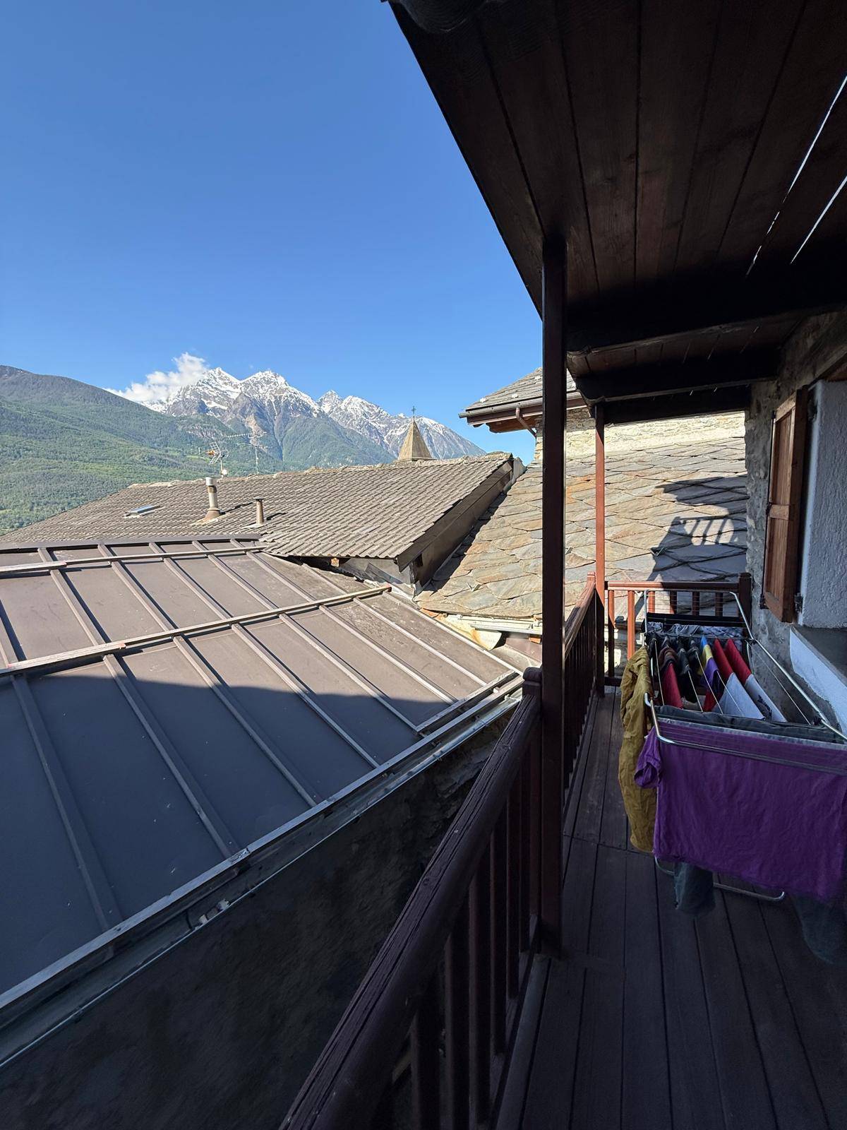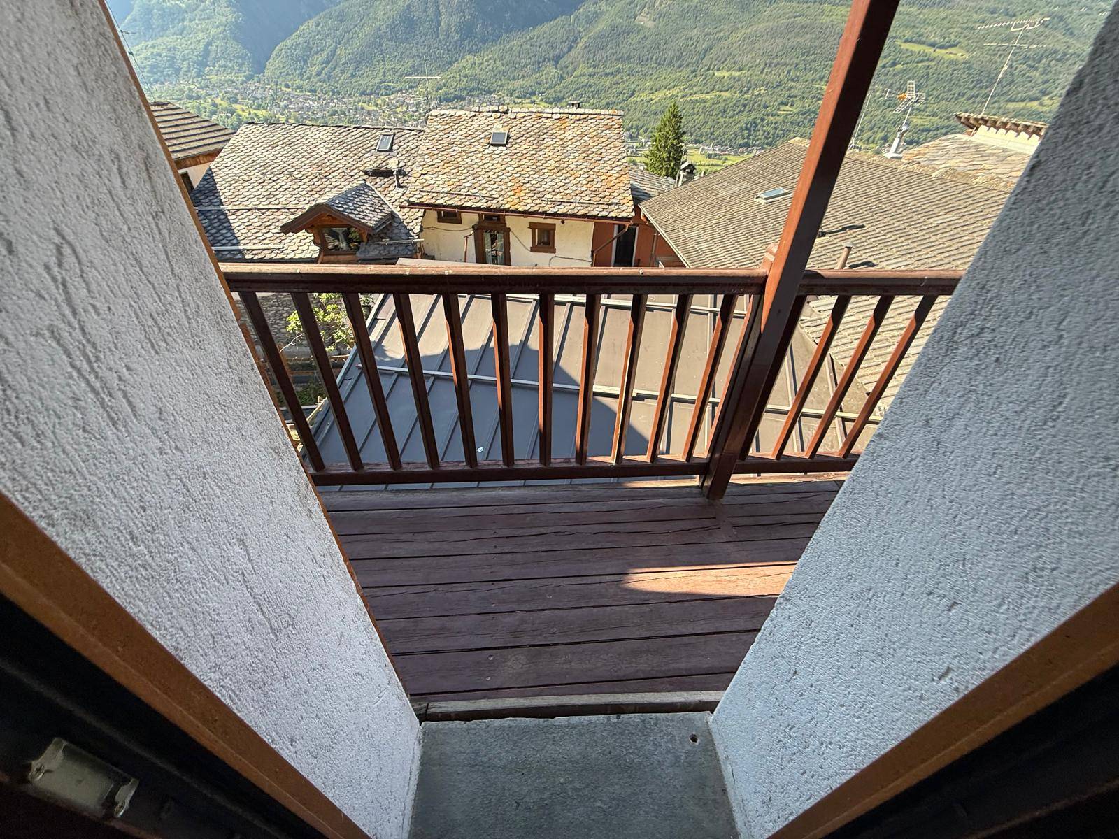 A Nus, in piccolo borgo storico, casa indipendente su tre livelli; al piano terra vi è l'ingresso con un terrazzo, un bagno e un angolo cottura; al primo piano il salone con un balcone adiacente e al secondo piano una camera da letto, anch'essa con un balcone con vista panoramica.