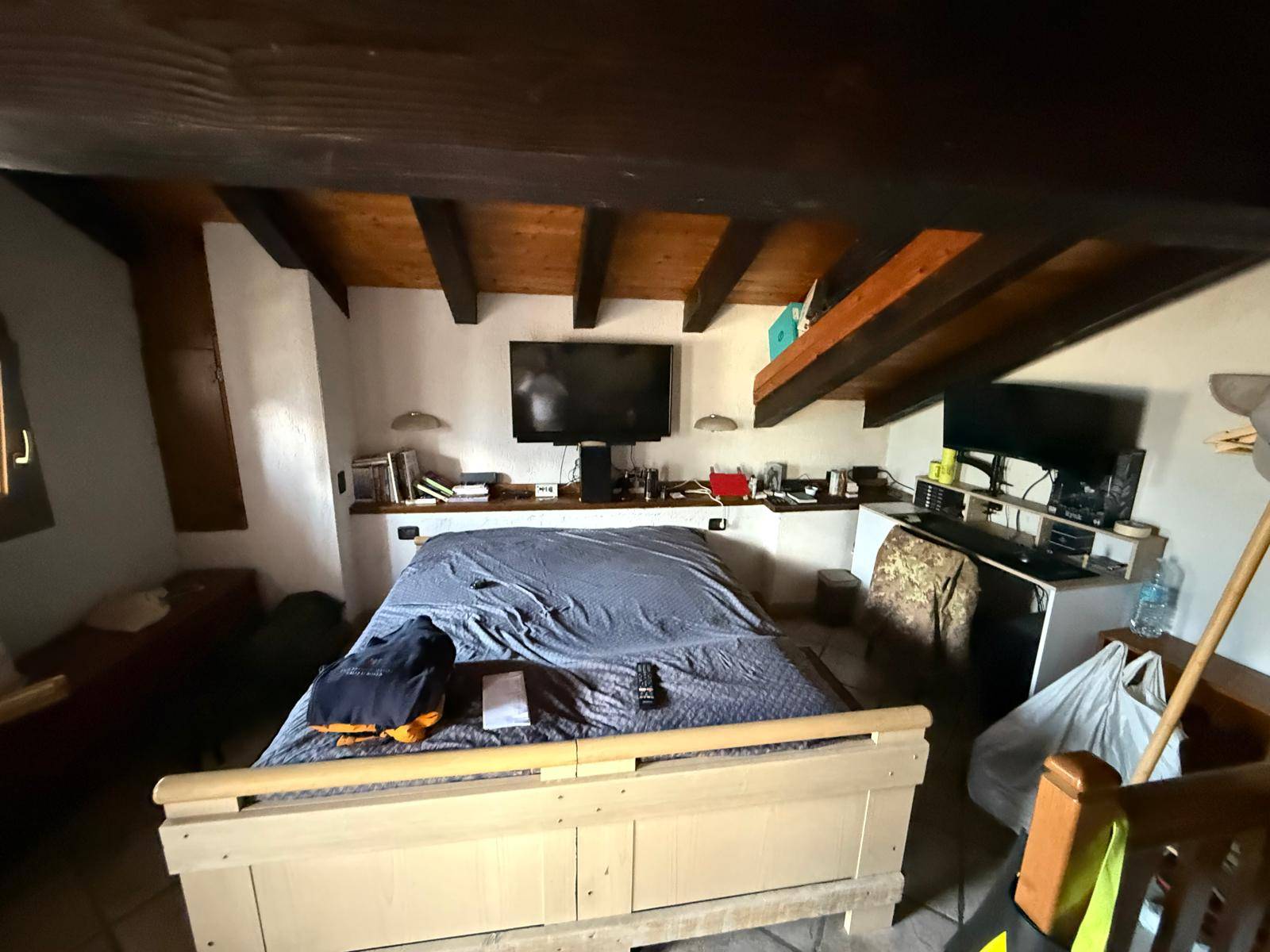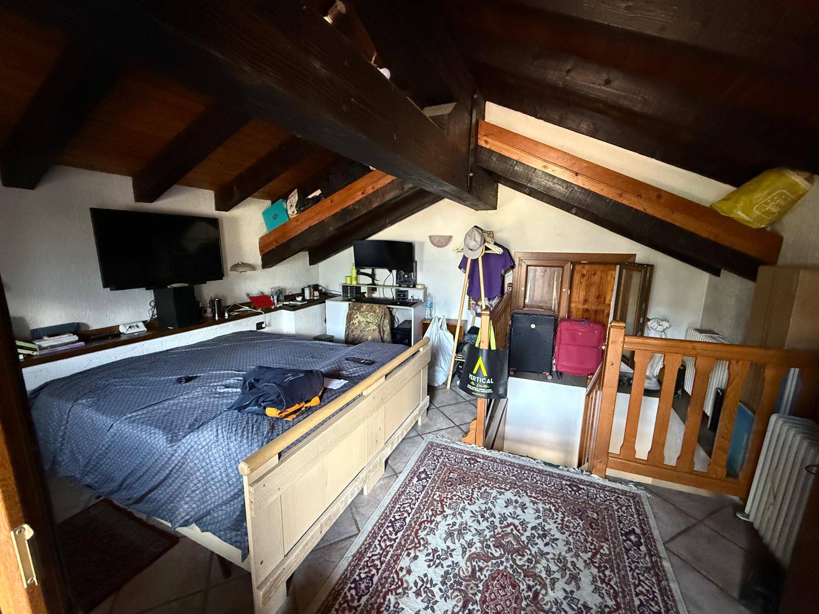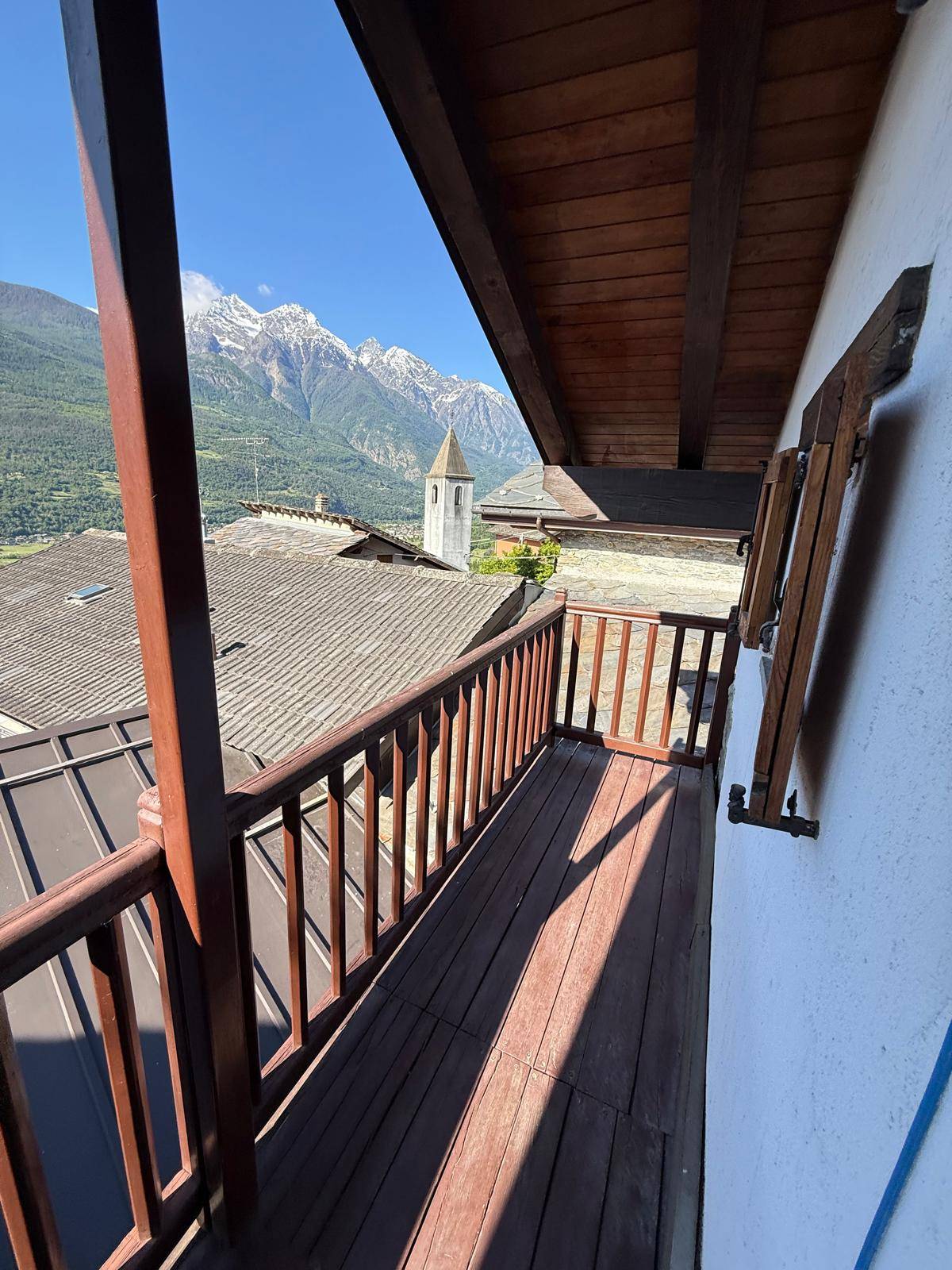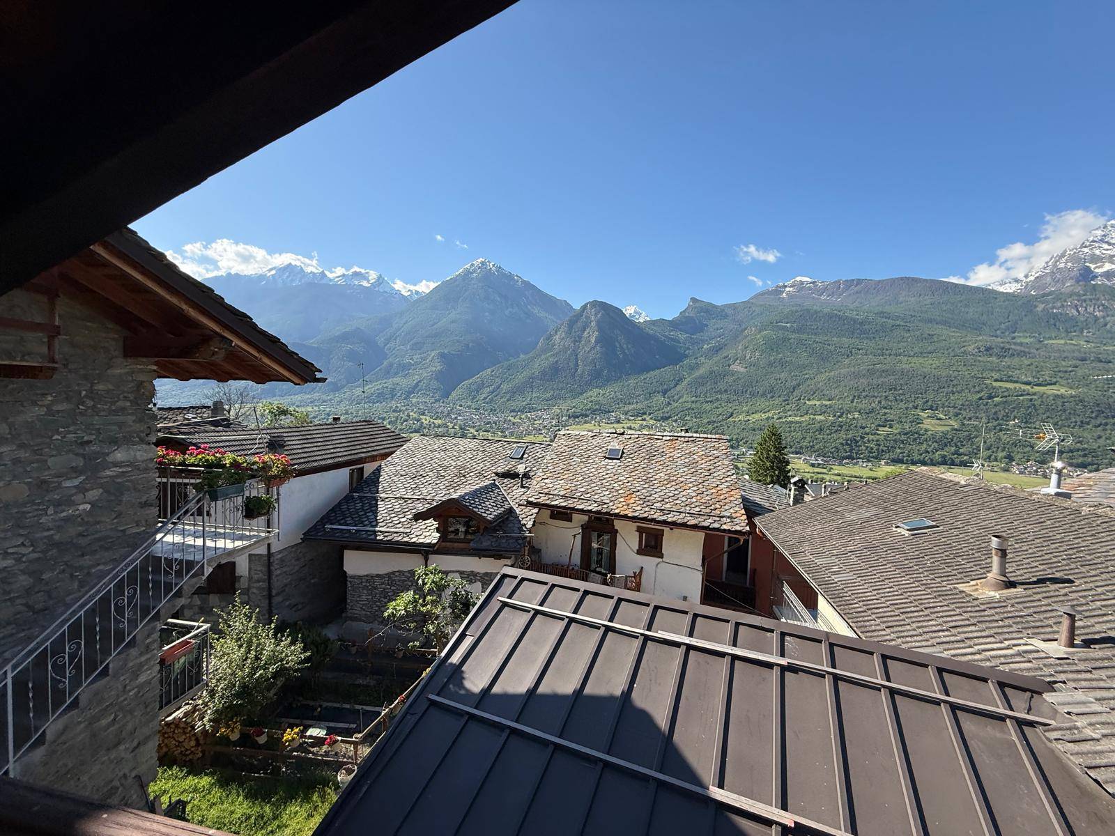 A Nus, in piccolo borgo storico, casa indipendente su tre livelli; al piano terra vi è l'ingresso con un terrazzo, un bagno e un angolo cottura; al primo piano il salone con un balcone adiacente e al secondo piano una camera da letto, anch'essa con un balcone con vista panoramica.