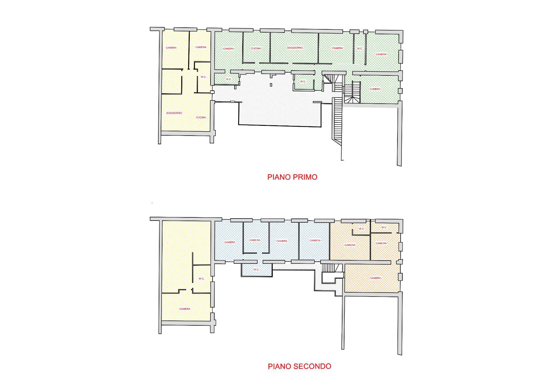 Uno è disposto su tre livelli con ingresso indipendente, di metratura totale pari a 370 mq, in discrete condizioni generali.