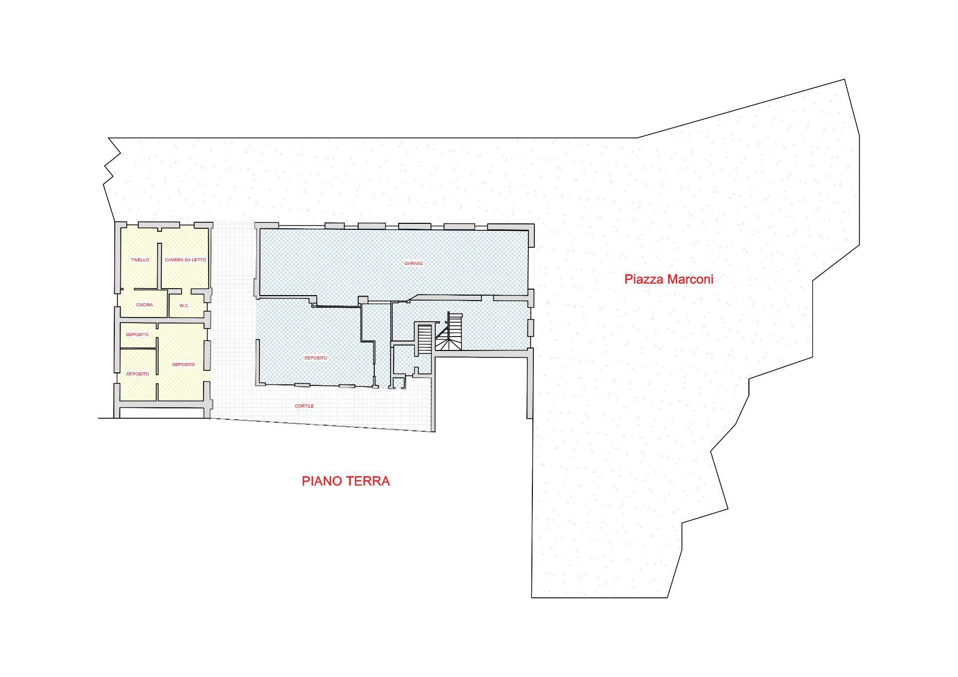 Centralissimo fabbricato adiacente alla piazza principale Marconi con cortile interno, composto da due corpi di fabbrica indipendenti tra loro.