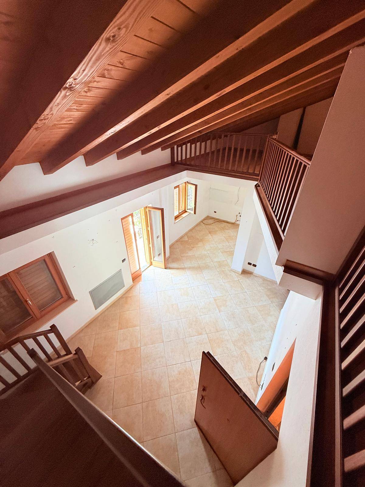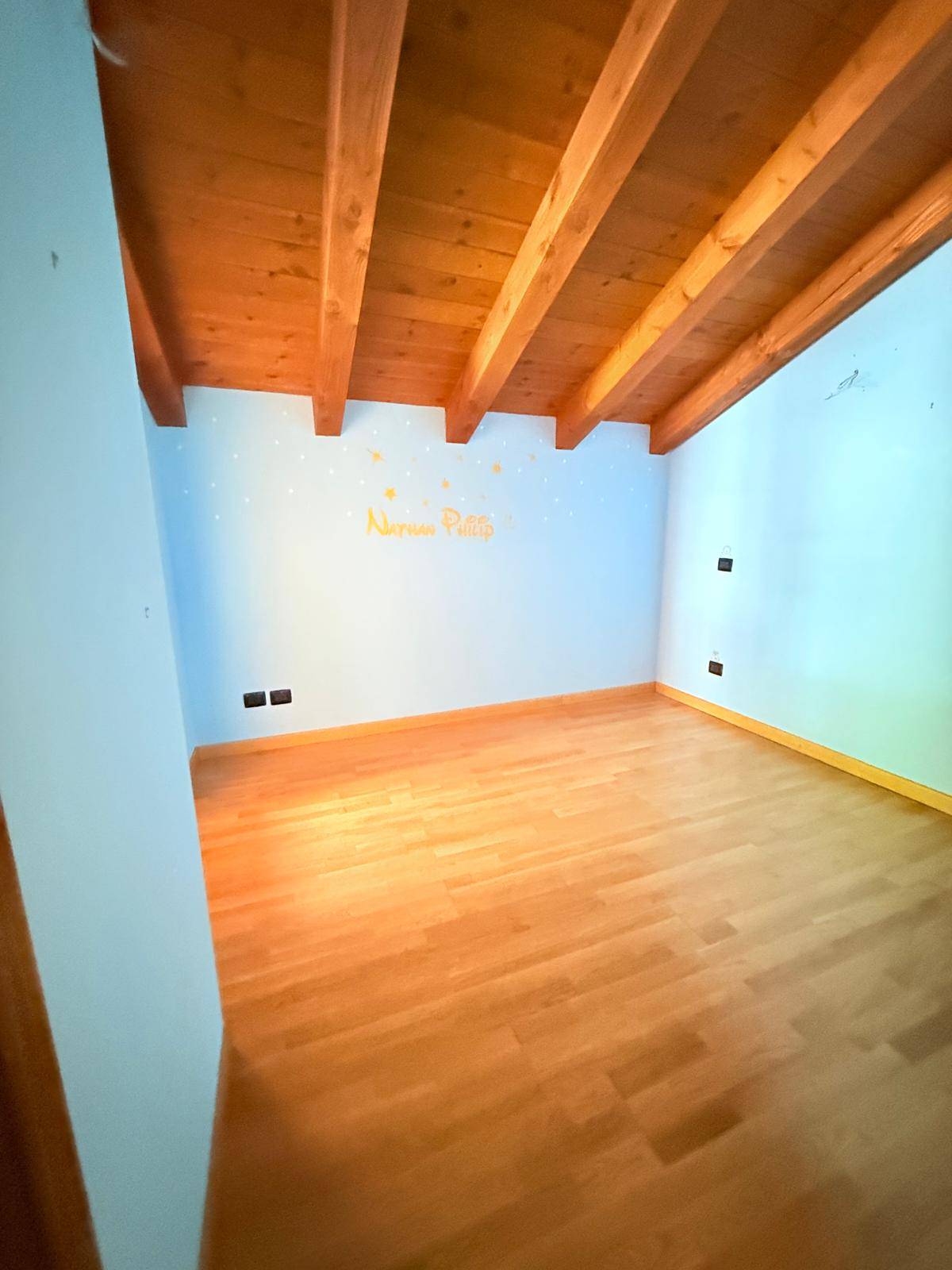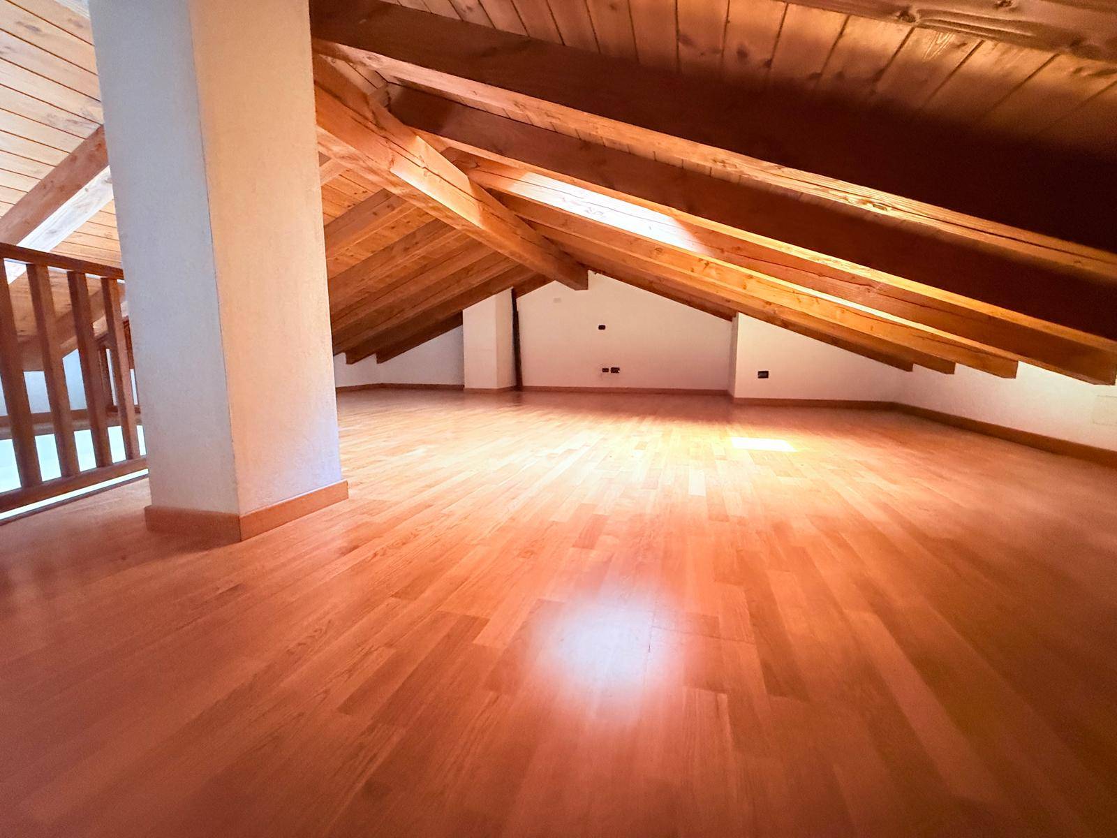 A due passi da Aosta splendido appartamento in villa, composto da ampio soggiorno con angolo cottura e scala interna, che accede al sottotetto semi abitabile di circa 40 mq, tre camere da letto, due bagni, un balcone, una terrazza abitabile, una cantina, un posto auto scoperto e un box doppio, quest'ultimo al prezzo di 40.000€.