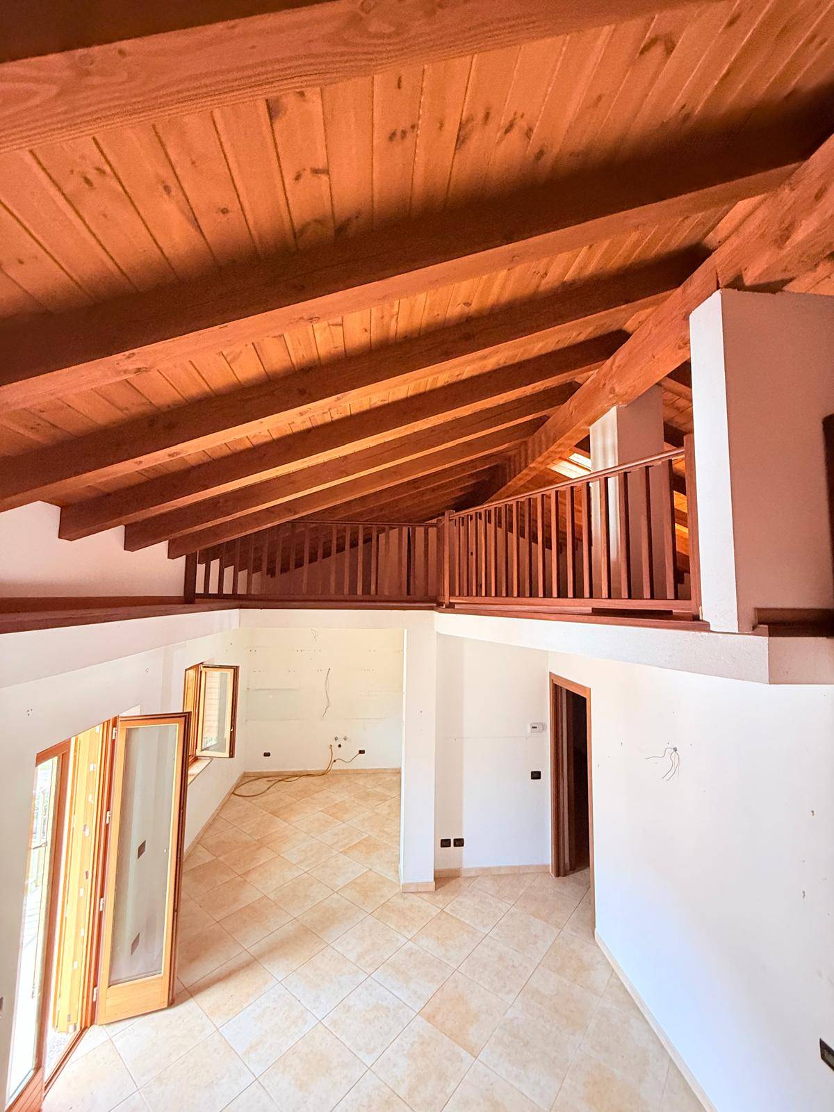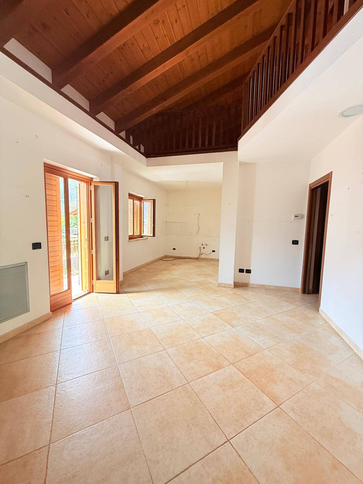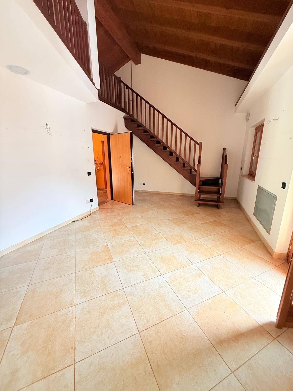 A due passi da Aosta splendido appartamento in villa, composto da ampio soggiorno con angolo cottura e scala interna, che accede al sottotetto semi abitabile di circa 40 mq, tre camere da letto, due bagni, un balcone, una terrazza abitabile, una cantina, un posto auto scoperto e un box doppio, quest'ultimo al prezzo di 40.000€.