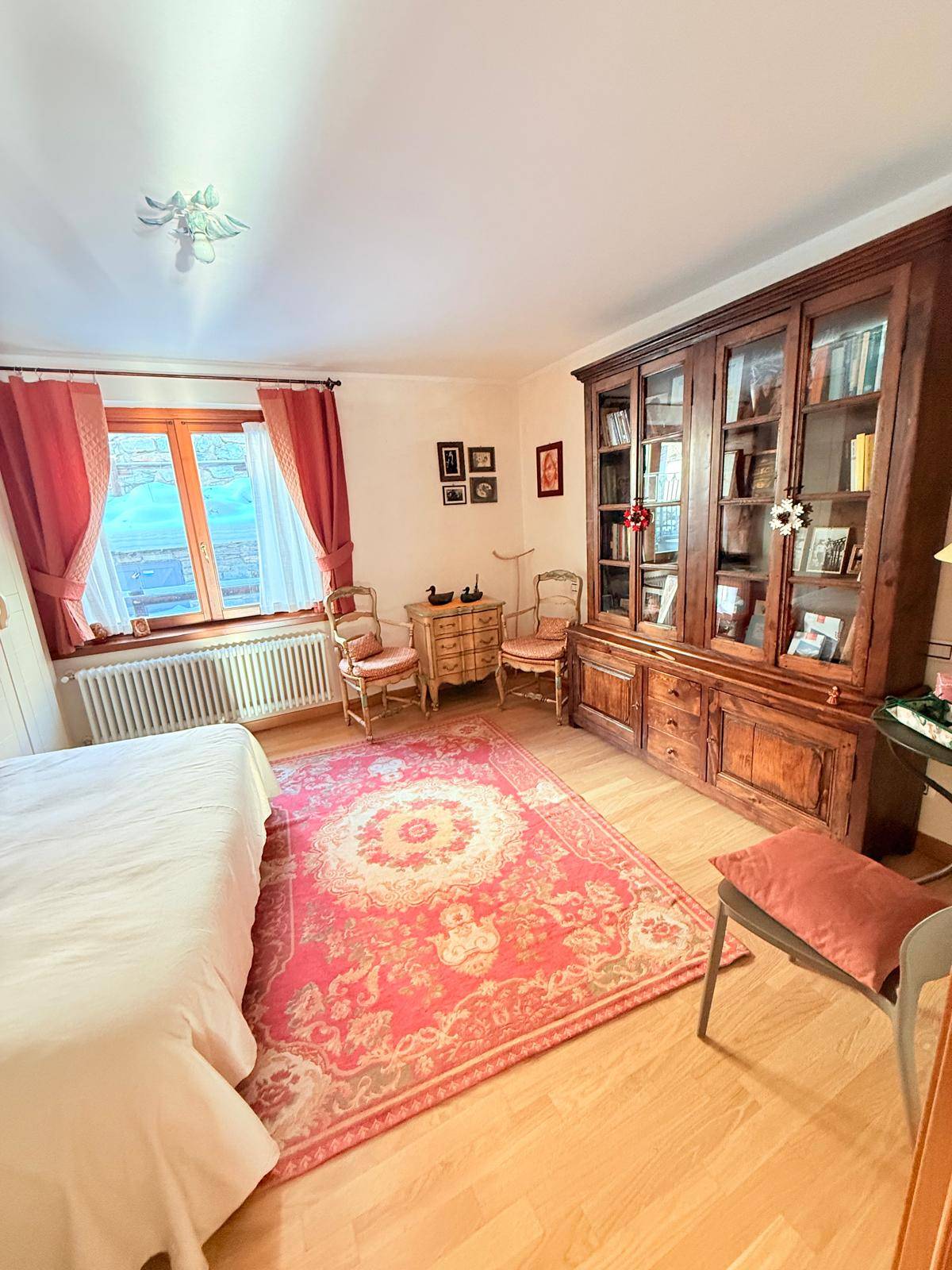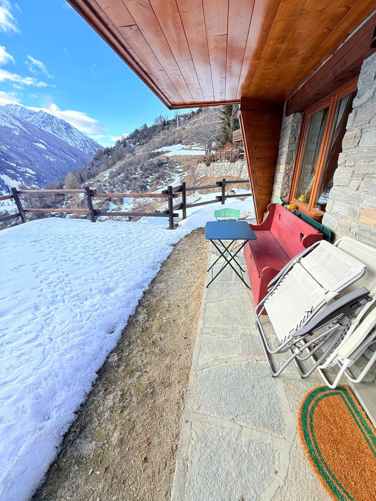 A due passi dal centro di Cogne bellissimo appartamento con meravigliosa vista sul Gran Paradiso, in casa di 4 alloggi posti al piano terra, composto da ampio soggiorno con angolo cottura con portafinestra sul verde privato, bagno spazioso e finestrato e ampia camera da letto dalla quale se ne possono ricavare due. Ampia corte esterna con box e posto auto coperto al piano interrato.
