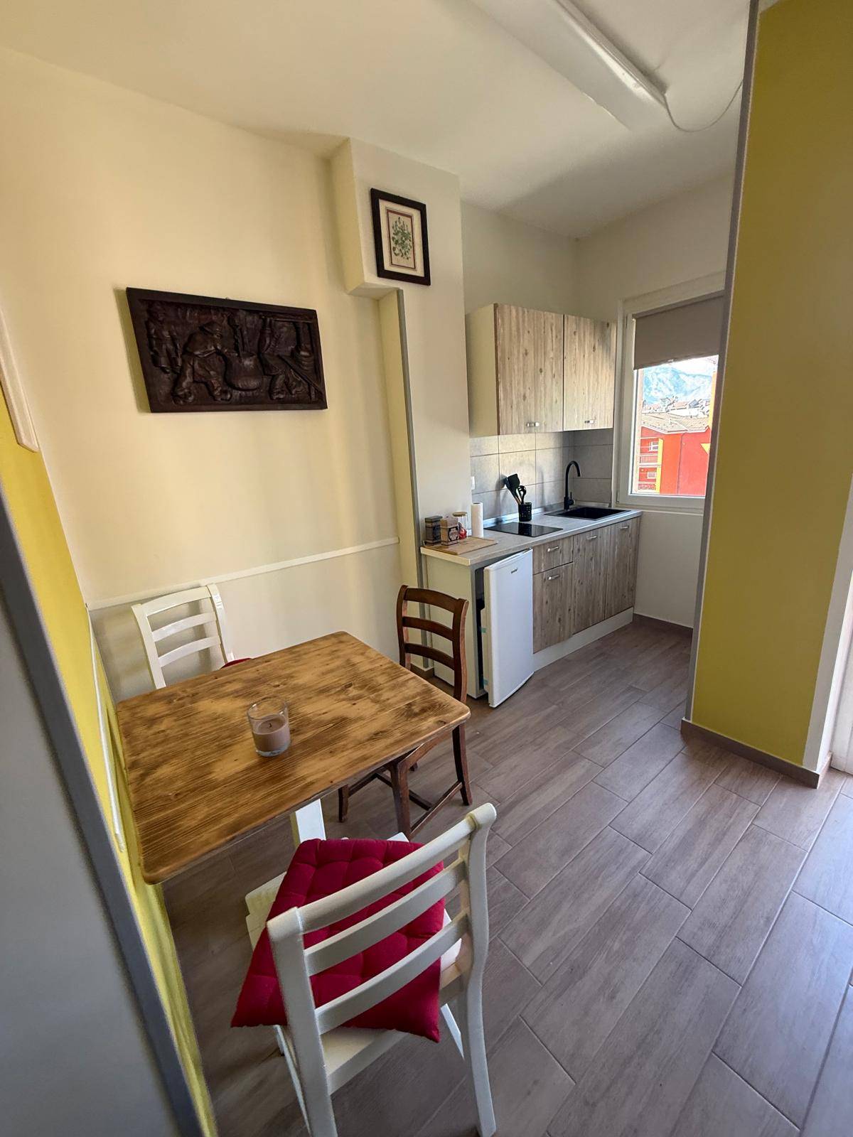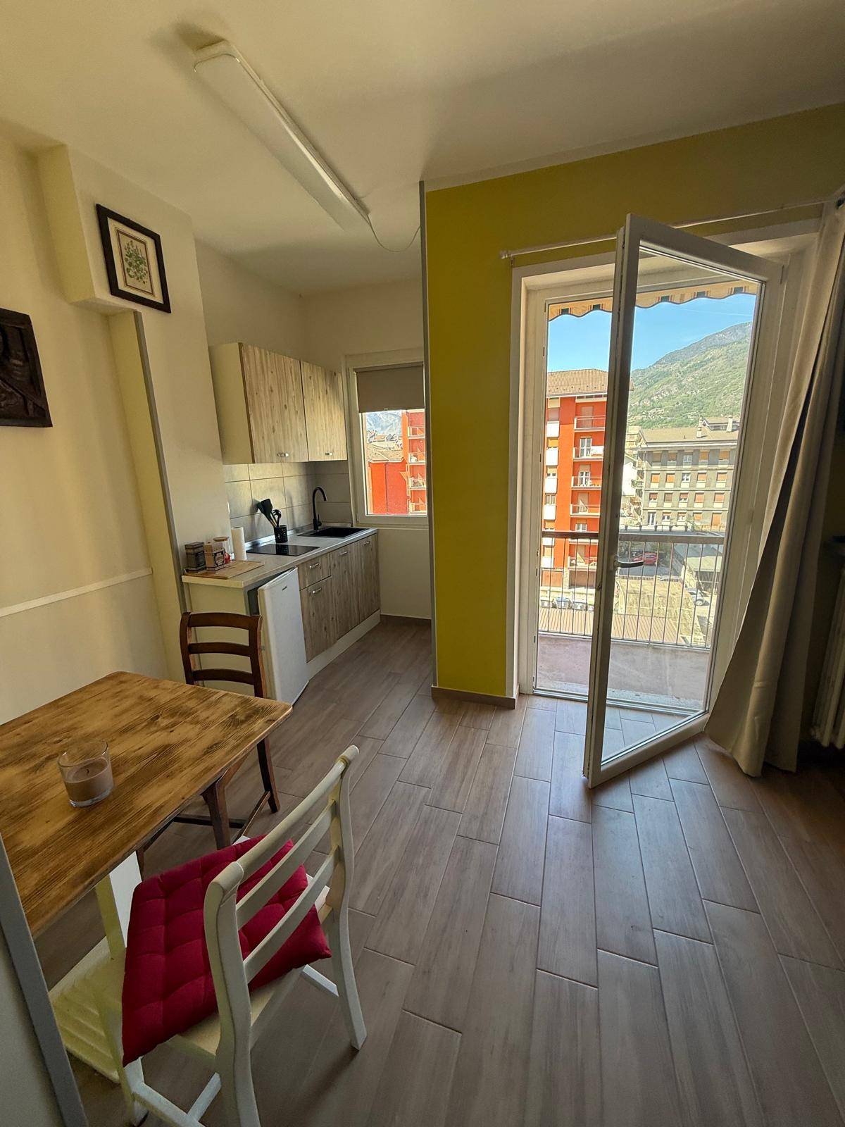 Occasione da non perdere! opportunità di acquisto per chi desidera vivere nel cuore di Aosta, splendido monolocale al quarto piano con ascensore distribuito in un unico locale che sfrutta al massimo lo spazio a disposizione, composto da cucinotto/soggiorno, camera da letto, bagno con doccia e balcone, dispone di un posto auto condominiale a rotazione, completamente arredato nuovo, vicino a tutti i servizi. L'appartamento è dotato di un impianto di riscaldamento a radiatori alimentato a metano che garantisce un'ottima efficienza energetica e un comfort ideale in ogni stagione. La sua posizione centrale lo rendono adatto a single, coppie o come investimento per affitti a breve o lungo termine.